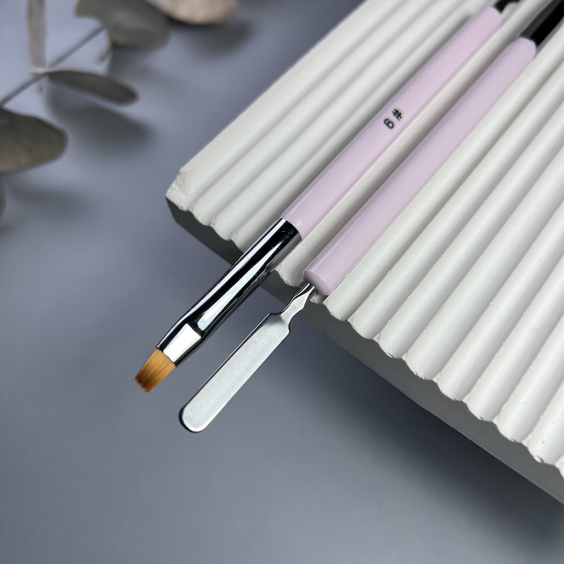 Кисть для полигеля Nail Art прямая №6 (розовая со шпателем)