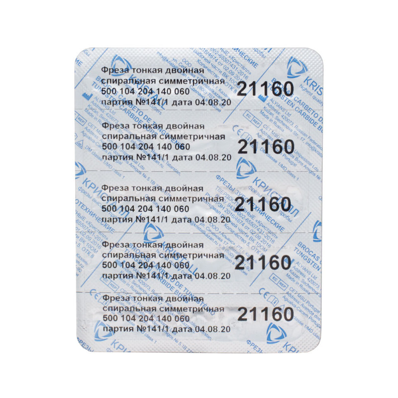 Твердосплавная фреза «Кристалл» 21160 изготовлена на заводе в Казани. Форма – конус, нарезка – мелкая крестообразная, насечка – красная. Фреза предназначена для nail-мастеров и подологов, индивидуально упакована в блистер.
