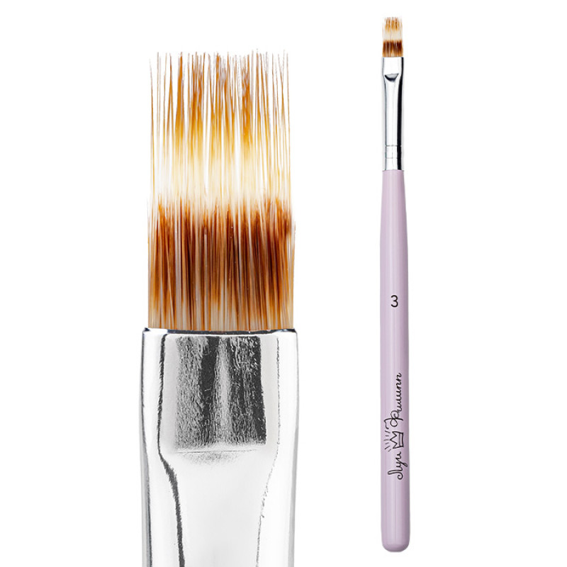 Плоская кисть с прореженными пучками идеальна для создания креативных дизайнов, таких как градиент, омбре и беби-бумер. Ворс разной длины прекрасно подходит для равномерного смешивания цветов как в вертикальном, так и в горизонтальном направлениях.