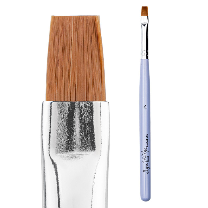 Плоская синтетическая кисть с плотным ворсом используется для выкладки материала и формирования правильной архитектуры. Форма зауженного квадрата и широкое полотно идеальны для работы с гелем и полигелем. Кисть также может использоваться для создания различных дизайнов.