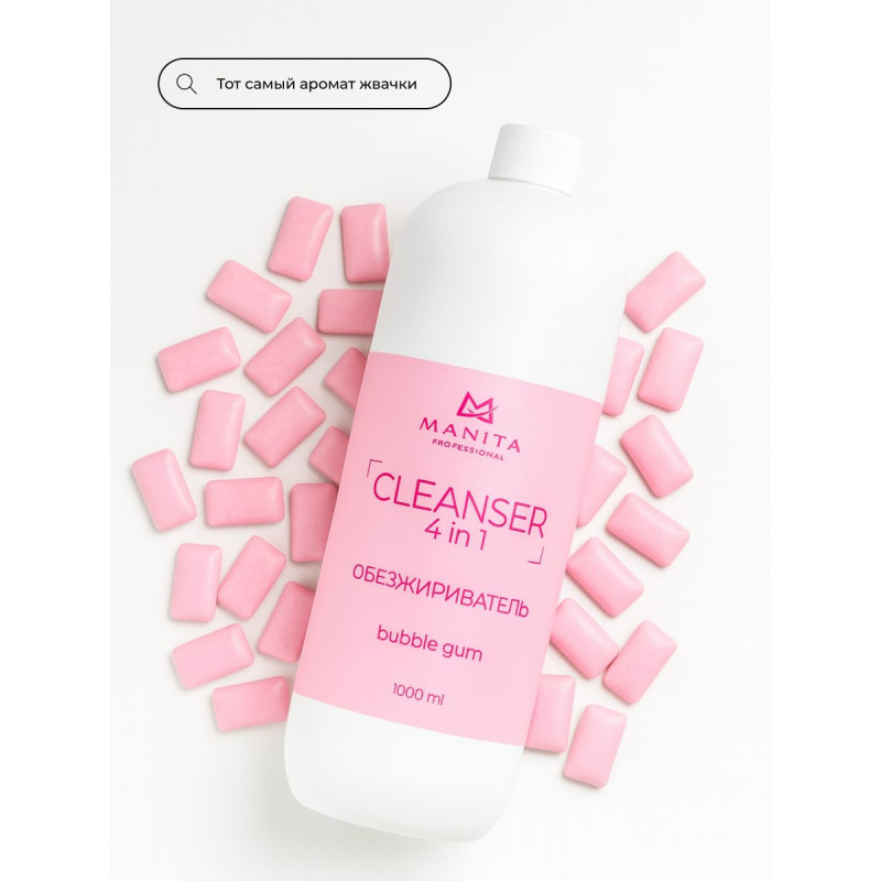 - MANITA Жидкость Обезжириватель для ногтей 4 в 1 "BUBBLE GUM" 1000 мл