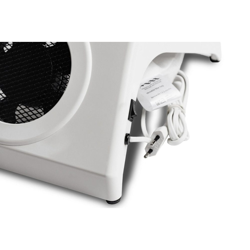 Настольный пылесос Max Storm 4 (белый без подушки) мощностью 32 Вт прекрасно втягивает пыль, опил и частички кожи, помогая сохранять воздух в кабинете чистым и безопасным для аллергиков и астматиков. Это прекрасный выбор для мастеров, использующих акрил и гель в работе. Аппарат имеет прочный негнущийся корпус из пластика, устойчивого к средствам дезинфекции, и надежно фиксируется на столешнице благодаря резиновым ножкам.