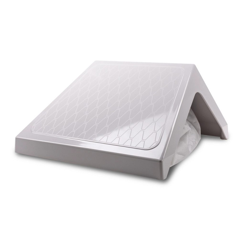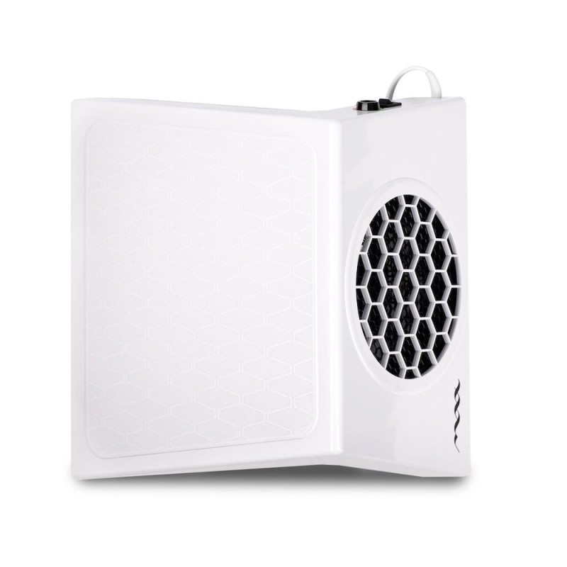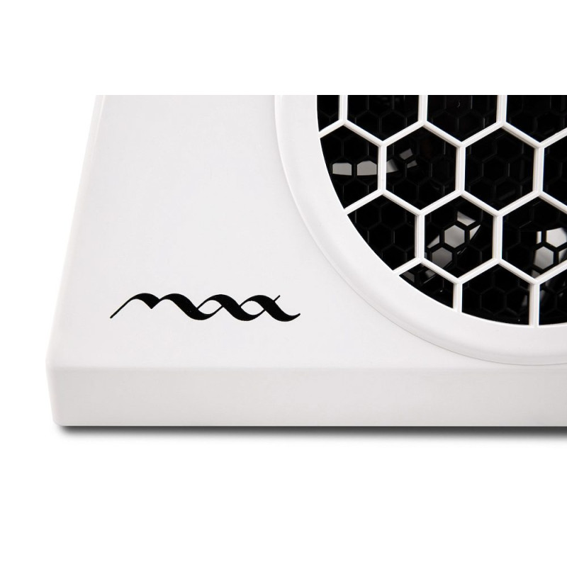 Корпус стильный, прочный и удобный, легко дезинфицируется. Оснащён зоной против сползания рук клиента в виде пластиковой подушки с ромбовидным рисунком для снижения напряжения в мышцах. Надёжно фиксируется на столешнице благодаря прорезиненным ножкам, утопленным в корпус. Рабочая зона защищена прочной решёткой MAX Safe 4 из двух частей, которая формирует правильный воздушный поток и защищает лопасти вентилятора.