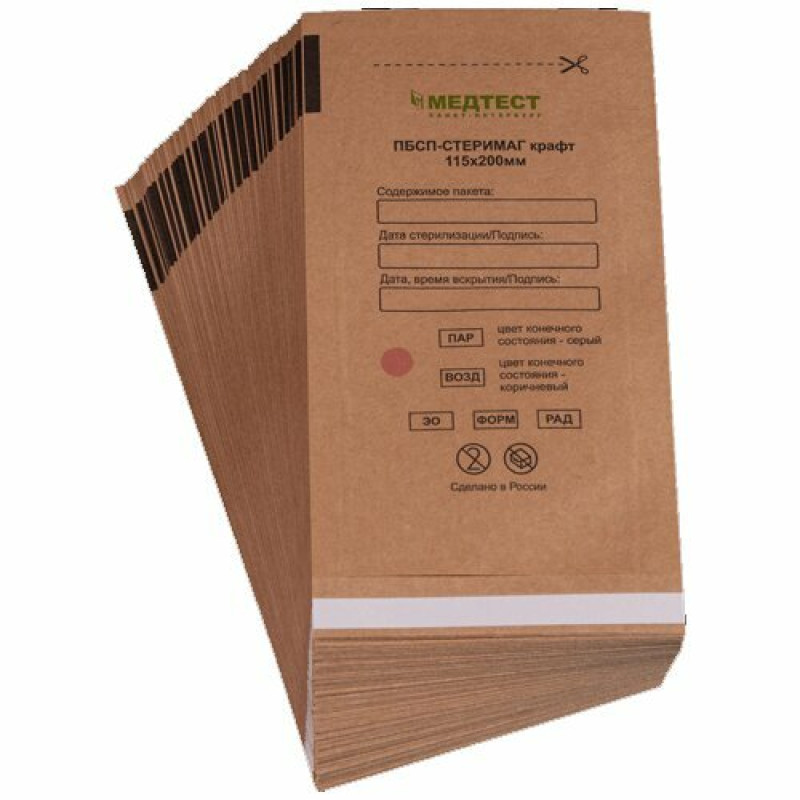 Крафт-пакет МЕДТЕСТ коричневые 115x200 (100 шт)