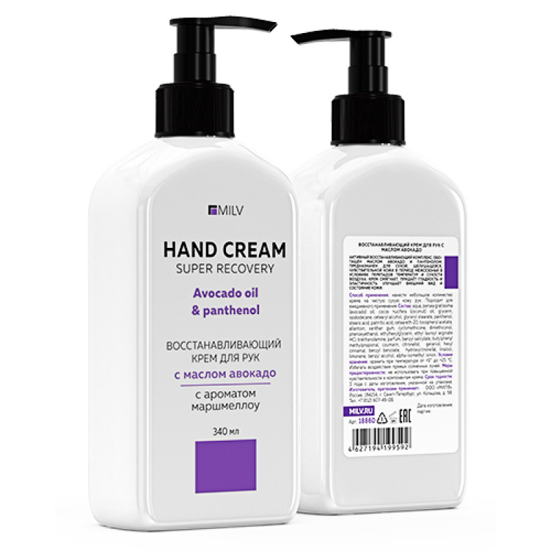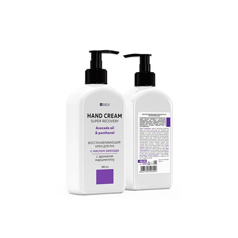 Milv Крем для рук "Восстанавливающий" с маслом авокадо МАРШМЕЛЛОУ 340 мл.