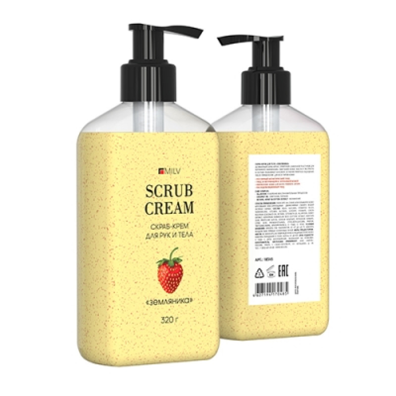 SCRUB-CREAM «ЗЕМЛЯНИКА» для рук и тела. Деликатный скраб-крем с приятной сливочной текстурой для бережного обновления и смягчения кожи. Масла и экстракты в составе ухаживают за кожей, оставляя приятное ощущение после применения.