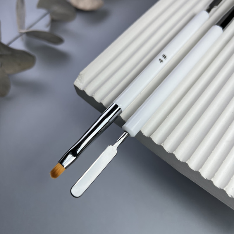 Кисть для полигеля Nail Art овал №4 (белая со шпателем)
