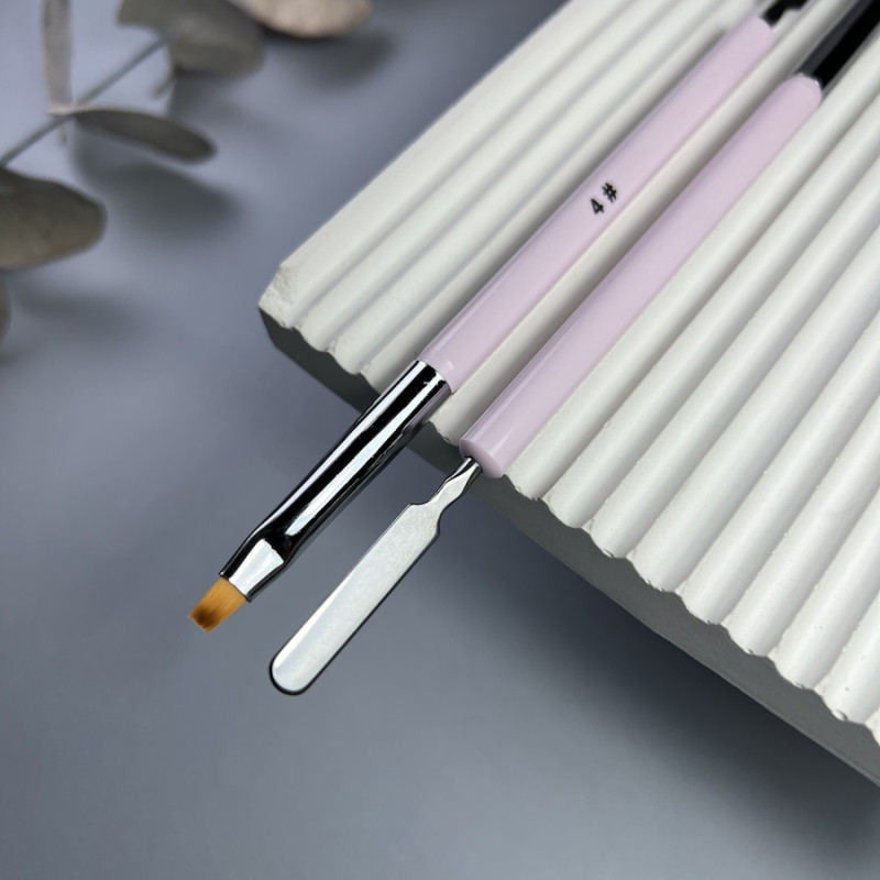 Кисть для полигеля Nail Art прямая №4 (розовая со шпателем)