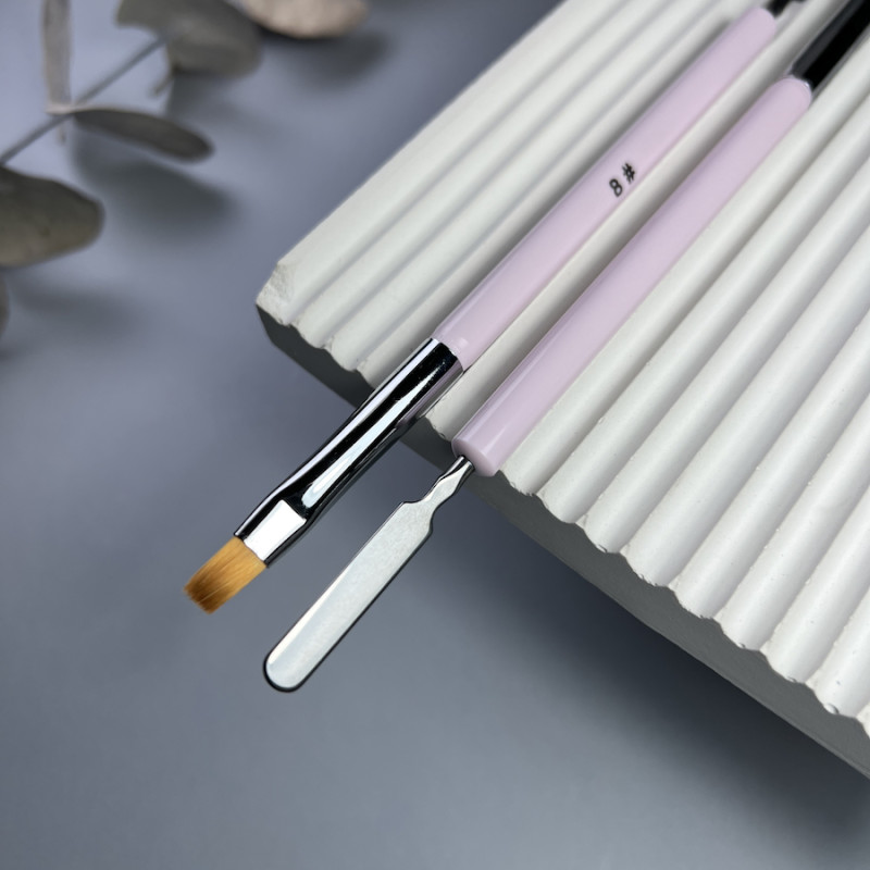 - Кисть для полигеля Nail Art прямая №8 (розовая со шпателем)