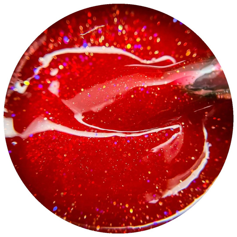 Жесткий полупрозрачный красный гель с мелкими блестками. Идеален для наращивания любой длины и формы, имеет приятную и комфортную для работы консистенцию. За сравнительно небольшое время встает в ровный блик, очень удобен для техники "без опила". Мастера любят его за отсутствие жжения при полимеризации. Необходимо наносить на базовое покрытие.
