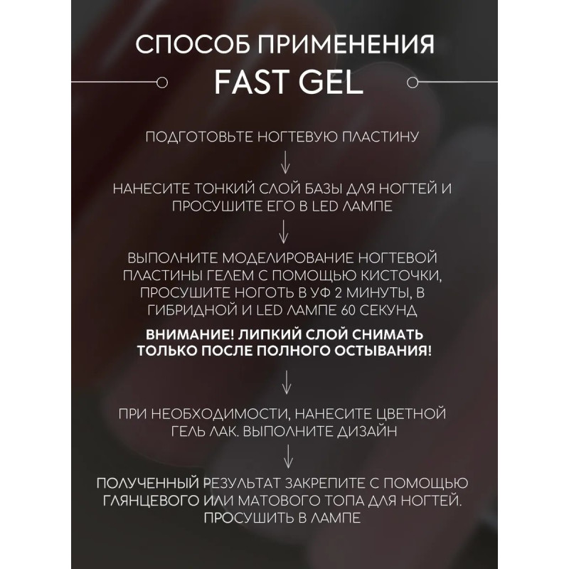 Полное отсутствие жжения. Удобное выравнивание и укрепление. Крепкие красивые ногти без усадки. Быстрая просушка на максимальной мощности.