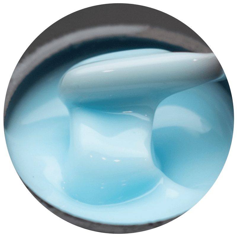 Жесткий цветной гель в голубом цвете. Идеален для наращивания любой длины и формы, имеет приятную и комфортную для работы консистенцию. За сравнительно небольшое время встает в ровный блик, очень удобен для техники "без опила". Кроме вышеперечисленного, мастера любят его за отсутствие жжения при полимеризации. Необходимо наносить на базовое покрытие.