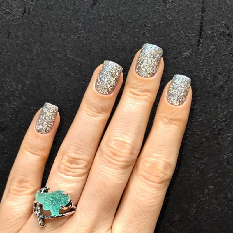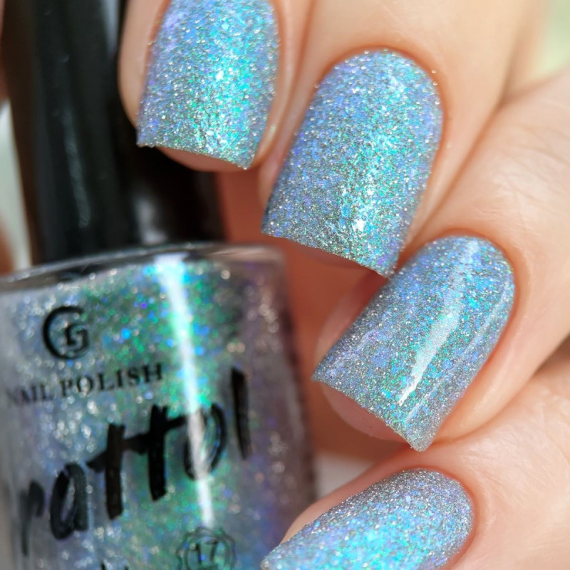 Crystal Glass — светоотражающий серебристо-белый с синей шифтящей слюдой и с зелёно-бирюзово-синим шиммером. Допускается нанесение в 1-3 тонких слоя. Финиш песочный.