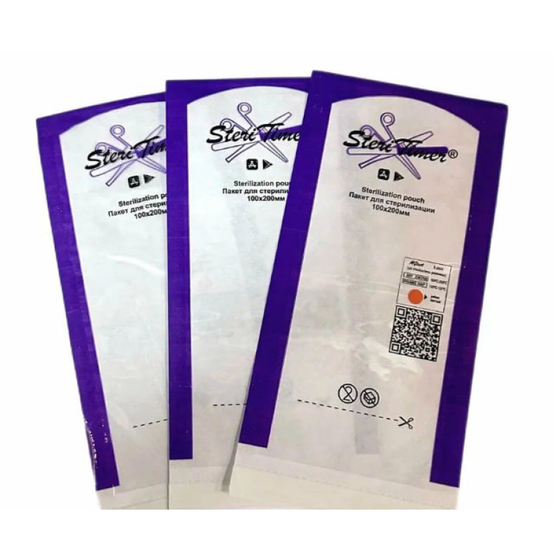 Крафт-пакеты "Медтест" STERITIMER 100*200 белые, 100 шт. Комбинированный пакет для стерилизации инструментов, подходит для воздушной и паровой стерилизации.