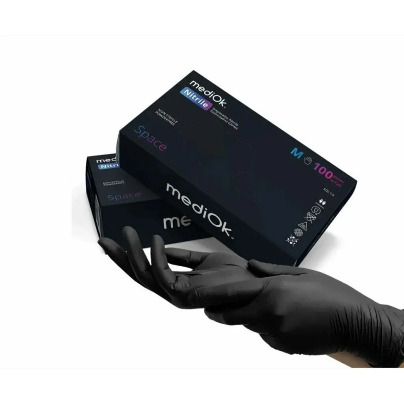 - Перчатки одноразовые нитриловые mediOk M черные 100 шт