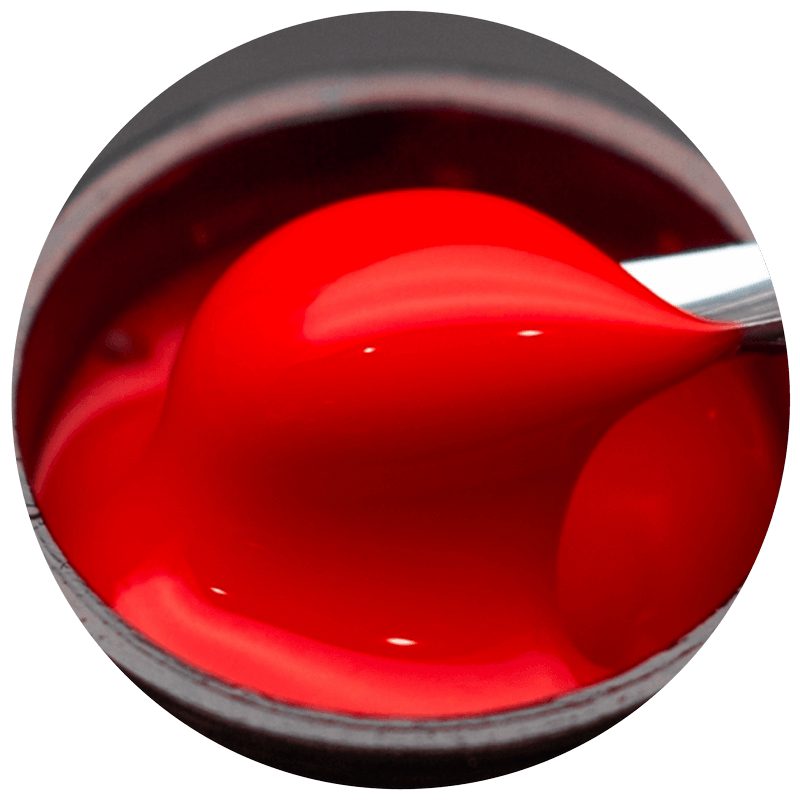 Жесткий цветной гель в алом цвете. Идеален для наращивания любой длины и формы, имеет приятную и комфортную для работы консистенцию. За сравнительно небольшое время встает в ровный блик, очень удобен для техники "без опила". Мастера любят его за отсутствие жжения при полимеризации. Необходимо наносить на базовое покрытие.