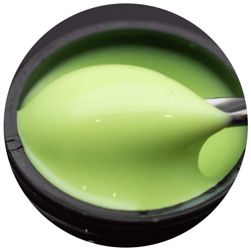 Жесткий цветной гель в цвете фисташка. Идеален для наращивания любой длины и формы, имеет приятную и комфортную для работы консистенцию. За сравнительно небольшое время встает в ровный блик, очень удобен для техники "без опила". Мастера любят его за отсутствие жжения при полимеризации. Необходимо наносить на базовое покрытие.