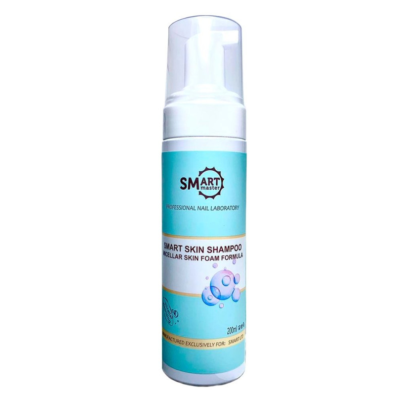 Умный шампунь для кожи (пена) бренда Smart в объеме 200 мл является гипоаллергенным продуктом на основе мицеллярной воды, не содержащим агрессивных ПАВ, мыла и отдушек. Он разработан для очищения кожи в процедурах маникюра и педикюра, а также для удаления загрязнений на всей поверхности кожи тела, включая лицо.