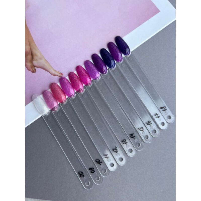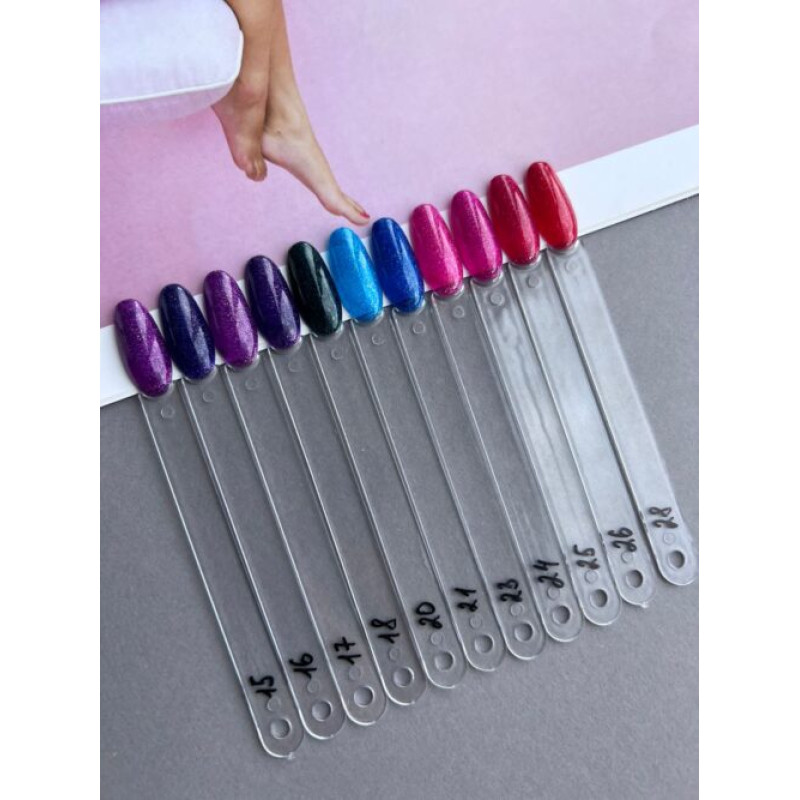 Коллекция блестящих гель-лаков. Оттенки сочетают в себе разнообразный шиммер, переливающийся при обычном освещении.