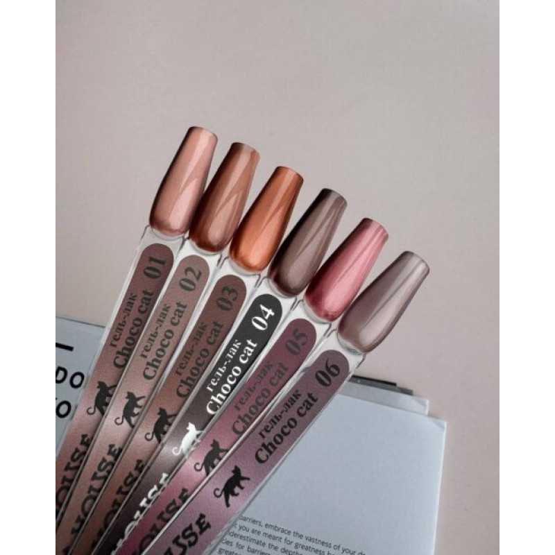 Коллекция гель-лаков CHOCO CAT объединяет шоколадно-кофейные тёплые оттенки с популярным образом шелковых кошек. Включает 6 шоколадно-тёплых оттенков с мельчайшими магнитными частицами тонкого помола. Оттенки универсальны и подойдут для создания любого образа, особенно в сдержанном стиле.