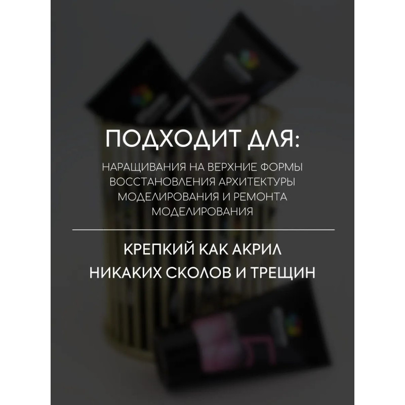 Подходит для моделирования и ремонта ногтей, для наращивания на верхних формах. Используется для восстановления архитектуры натуральных ногтей и моделирования при ремонте с гель-лаком. Наносится на грунтовочный слой базы.
