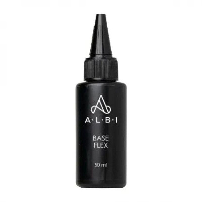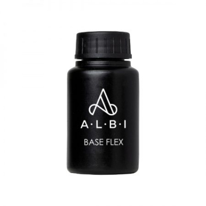 ALBI FLEX BASE — эластичная база, которая служит как самостоятельное покрытие, так и подложкой под твёрдые материалы. Консистенция средне-густая. Подходит для коротких и средних ногтей, а также для гибких, тонких и скручивающихся ногтей, которые нуждаются в укреплении.