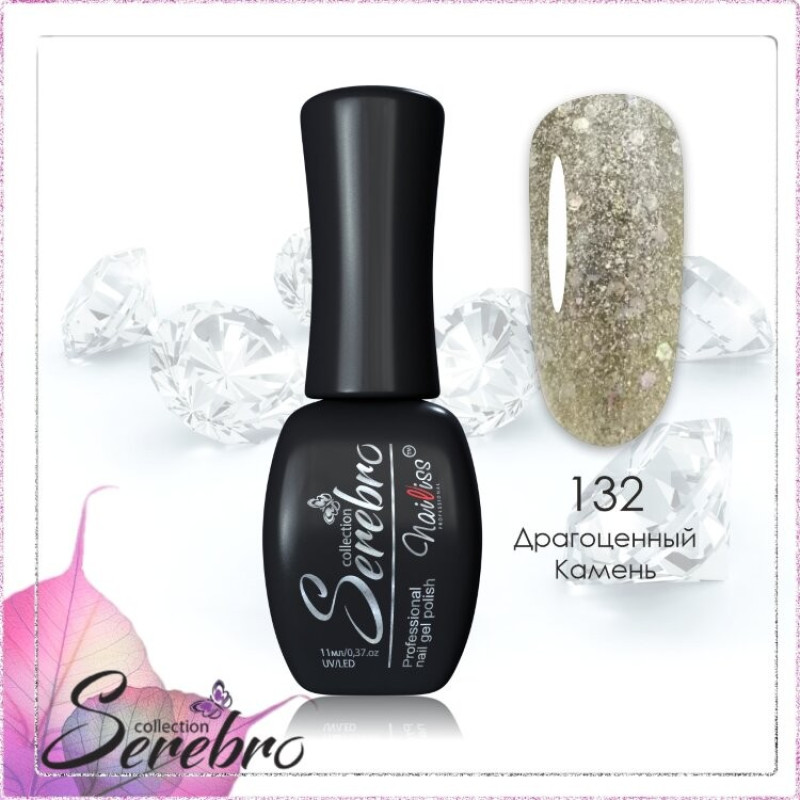 Гель-лак Serebro 132, 11 мл. Гель-лак средней консистенции позволяет избежать затеков и способствует равномерному покрытию ногтевой пластины, не создавая лишнюю толщину. Для плотного цвета достаточно нанести 1-2 слоя средства. Продукт имеет приятный аромат и не тускнеет в процессе носки.