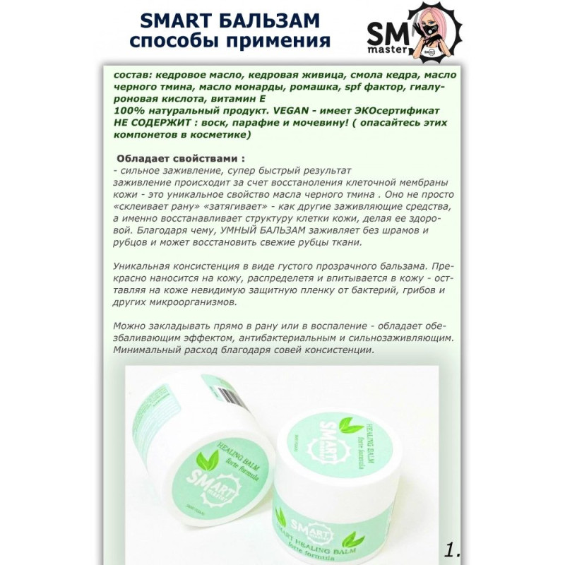 SMART Умный бальзам для быстрого восстановления кожи 15мл