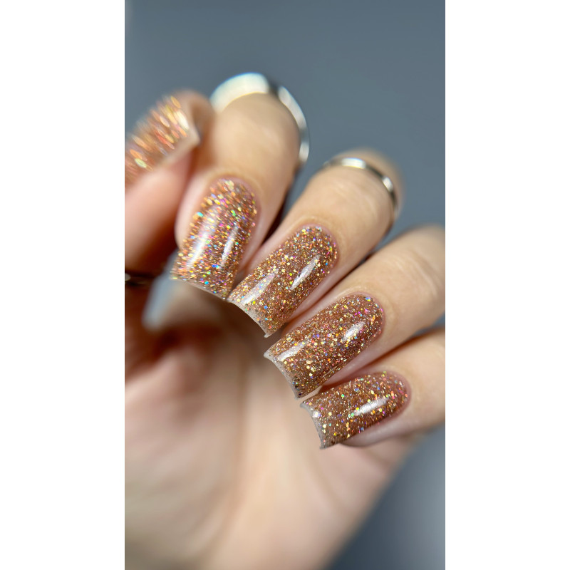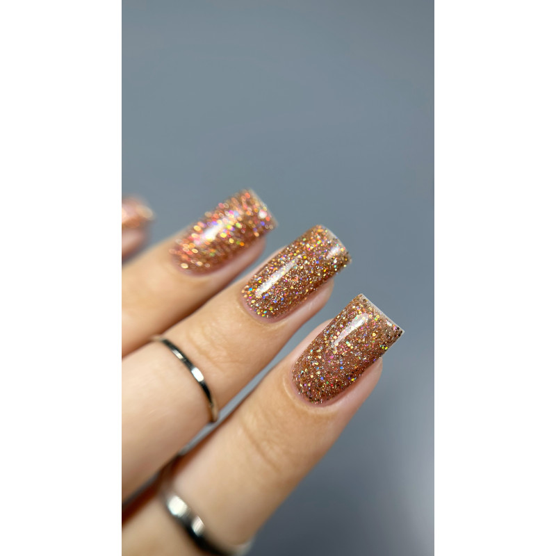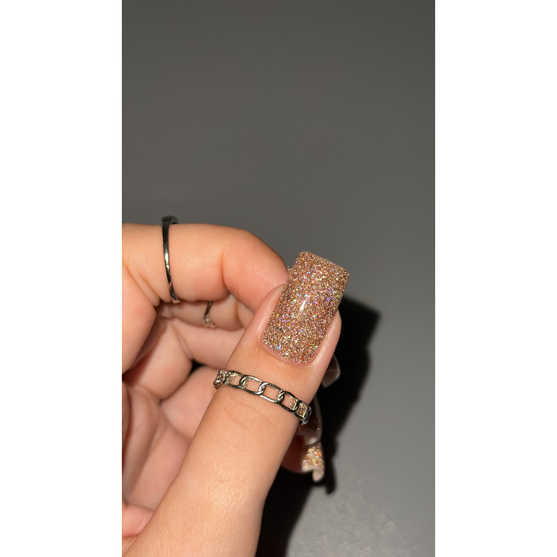 «Звездная пыль» — это россыпь голографических блесток на серебряной основе. Гель-лак прекрасно смотрится как самостоятельное покрытие за счет светоотражающего эффекта, голографических блесток и дорогого оттенка. Также его можно добавлять как яркую изюминку в любой дизайн.