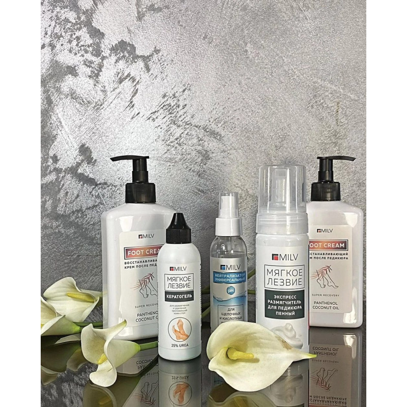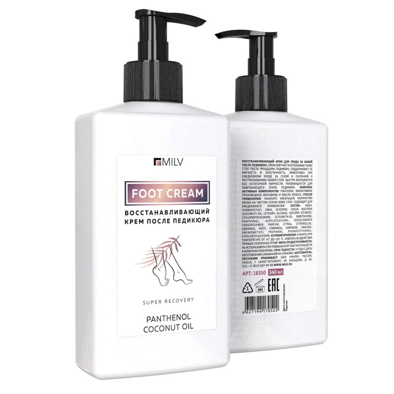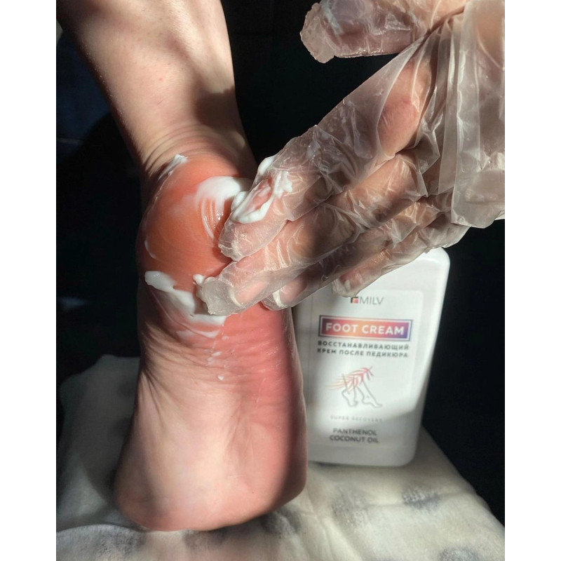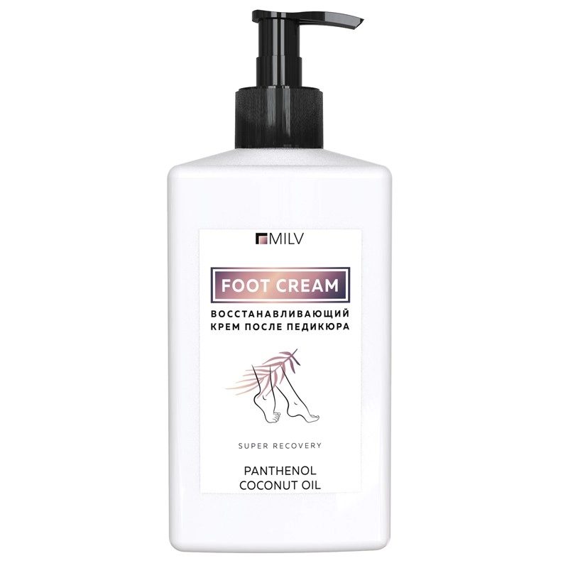 Восстанавливающий крем после педикюра бренда Milv в объеме 340 мл. Нежный и легкий по текстуре крем предназначен для завершающего ухода за кожей стоп после процедуры педикюра. Подходит для всех типов кожи, может использоваться ежедневно, особенно для сухой и склонной к растрескиванию кожи.