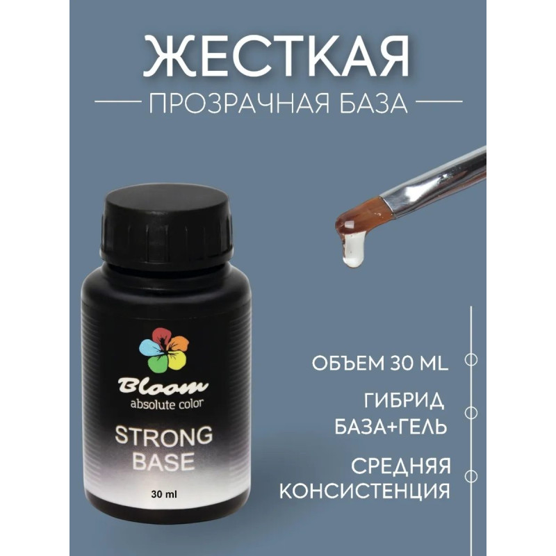 Гель-лак Bloom база 30мл жесткая молочная. Жесткая камуфлирующая база для укрепления, выравнивания и наращивания ногтевой пластины. Прочная, без сколов, трещин, усадки и отслоек. Сочетается с другими фирмами гель-лаков.