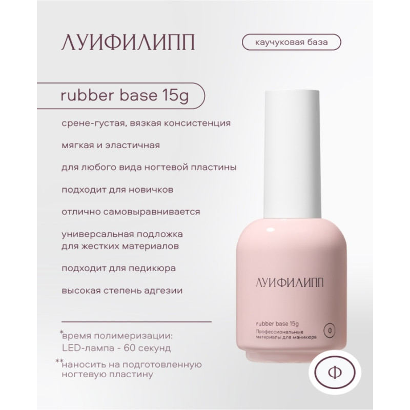 База Rubber обладает сильной вязкостью и густой консистенцией, идеально подходит для работы с проблемными ногтями. Она создает надежную основу, самовыравнивается и экономична в использовании. При полимеризации не вызывает жжения и обретает высокую устойчивость к внешним повреждениям.