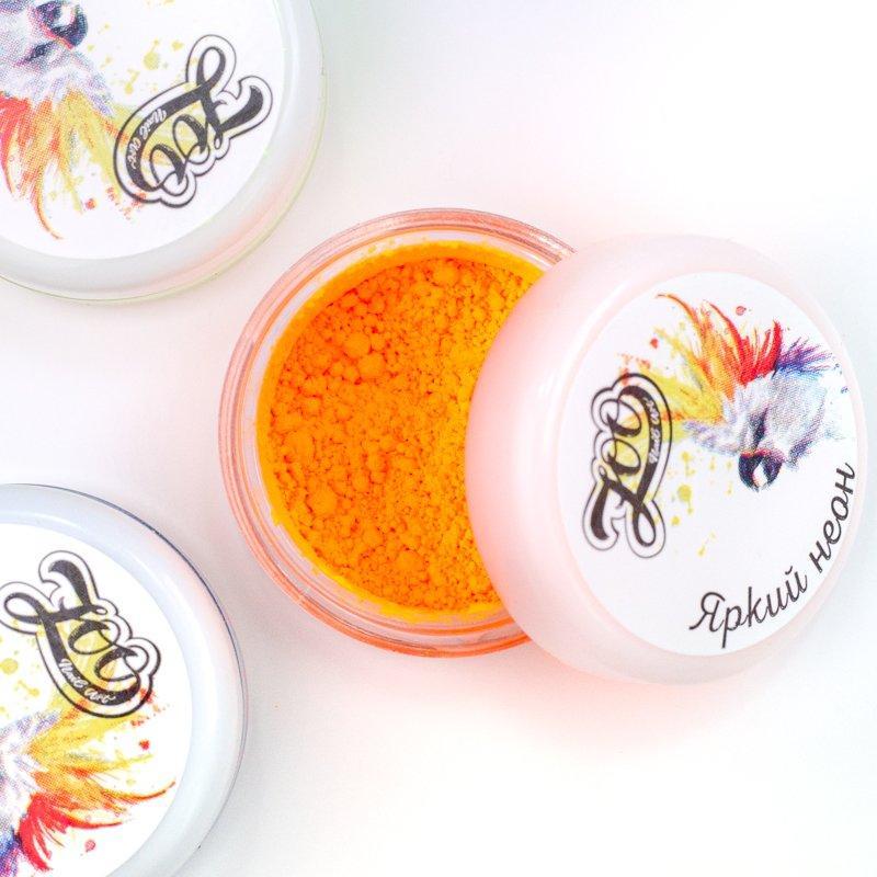 Мелкий порошок, который светится ярким кислотным цветом под ультрафиолетовыми лампами или на солнце. Пигмент наносится на липкий слой цвета, базы, топа или гель-краски. Также можно создать липкость покрытия с помощью праймера.
