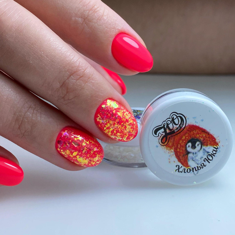 Это тончайшие пластины пигмента разной формы и размера. Их можно аккуратно уложить на ноготь, сохранив форму, или легким движением растереть в пыль. Главная прелесть материала в многообразии вариантов нанесения, каждый из которых выглядит совершенно по-разному.
