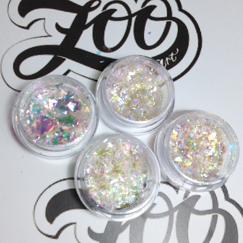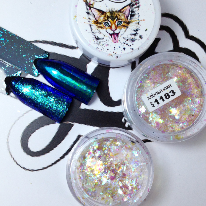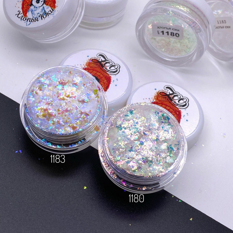 Полупрозрачные хлопья Юки с золотисто-сине-фиолетовым отливом.