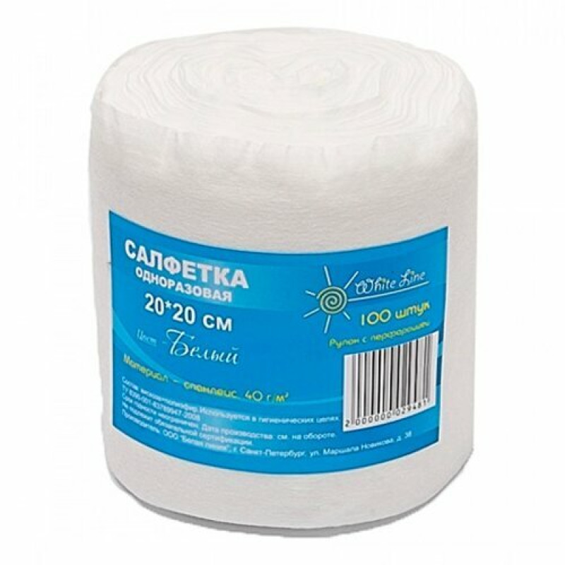 Салфетка White Line 20x20 спанлейс белая 100шт