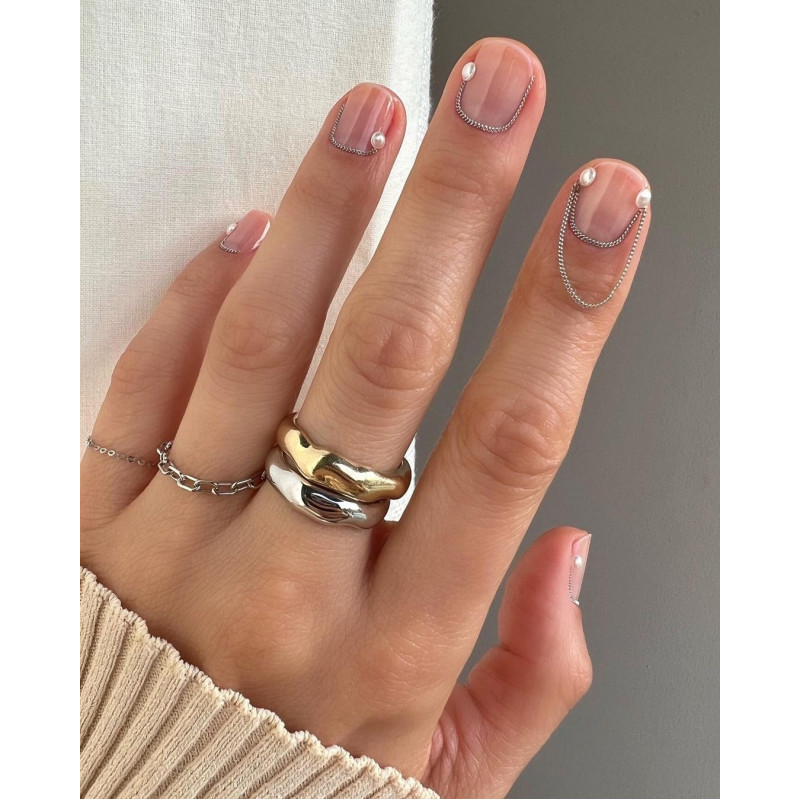 Цепь для маникюра. Ширина 0,8 мм, длина 50 см, цвет серебро. Металлические цепи не линяют и не облезают при длительной носке. Используются в инкрустации со стразами для заполнения пустот, аквариумного дизайна или самостоятельно в дизайне.
